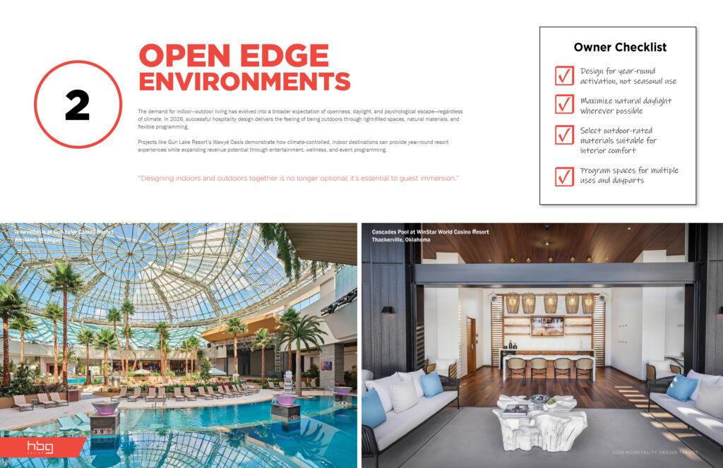 In 2026, hospitality design is all about creating immersive, memorable experiences that resonate with guests long after they leave. From boutique hotels to large-scale resorts and entertainment destinations, the bar for innovation has never been higher. HBG Design, ranked #2 Hospitality and Entertainment Design Firm in the U.S., by Hotel Business Magazine for 2026, has decades of experience translating industry insights into transformative guest experiences. This year, our team has identified the design thinking that will define hospitality experiences and drive both engagement and operational success. You can download the full design thinking report here.