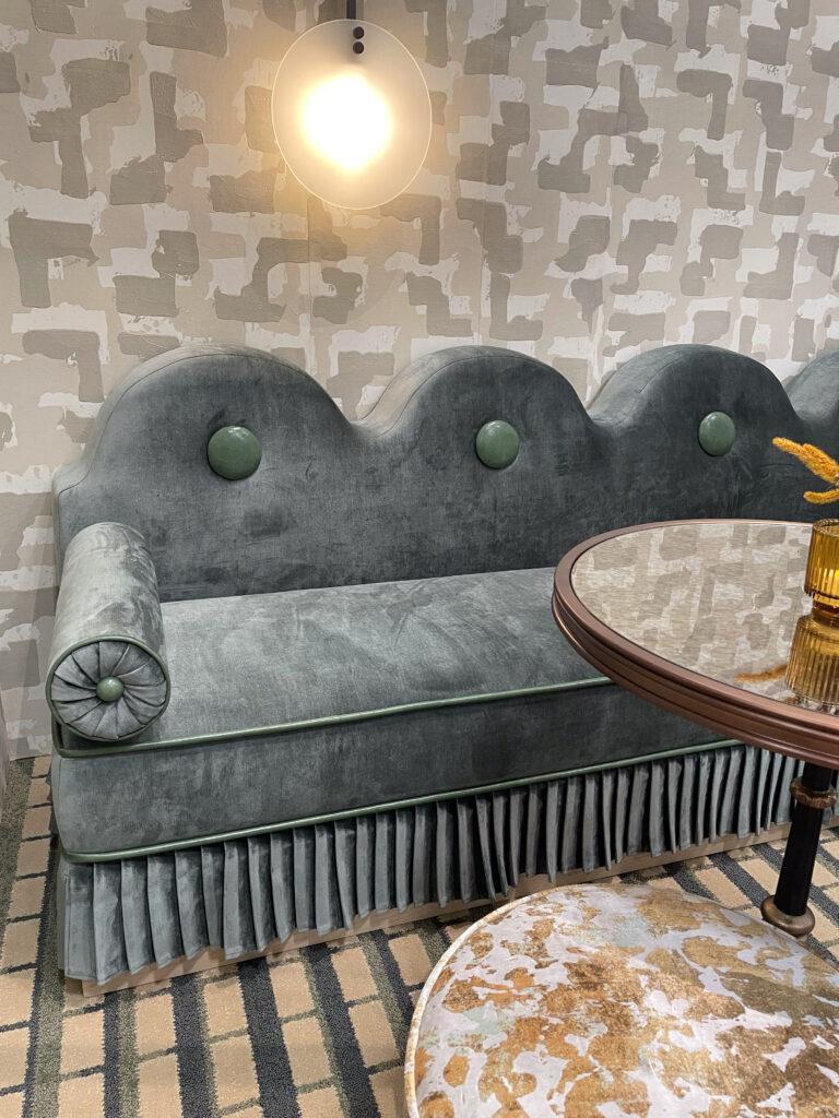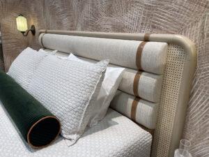 Color palettes were bold and comforting: emerald green and blush pink maintained their presence, while navy and golden ochre brought richness and depth to FF&E and finishes.