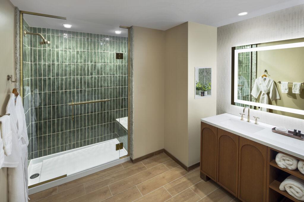 “We focused on creating depth and contrast rather than relying on expensive gestures. By layering rich, saturated colors against warm wood tones and soft neutrals, we created guestrooms that feel calm, refined, and highly livable—spaces that elevate the guest experience while remaining efficient to build and maintain.”