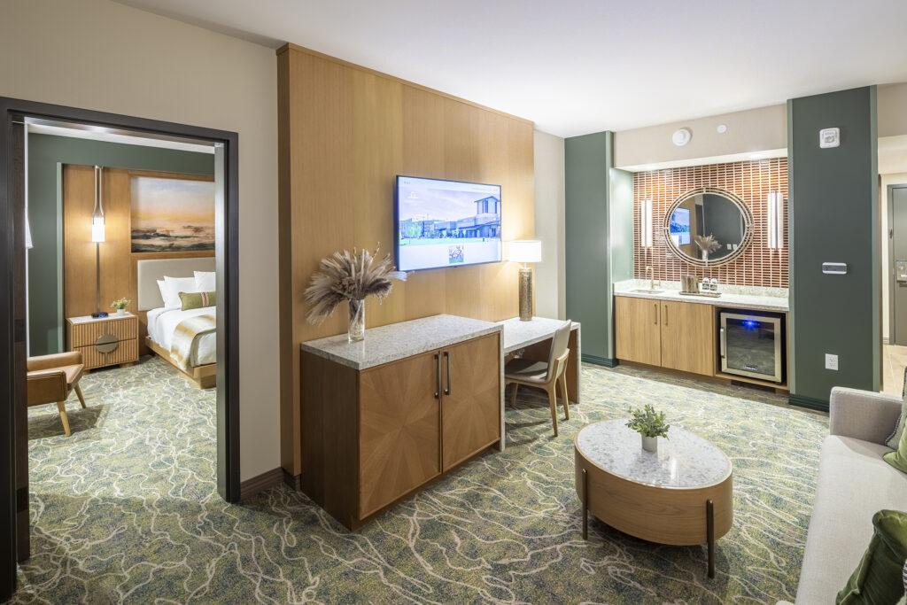 Golden Mesa’s suites—offered in 1.5- and 2-bay configurations—were designed to meet the needs of longer stays, VIP guests, and premium players, while maintaining a strong sense of cohesion with the standard guestrooms.