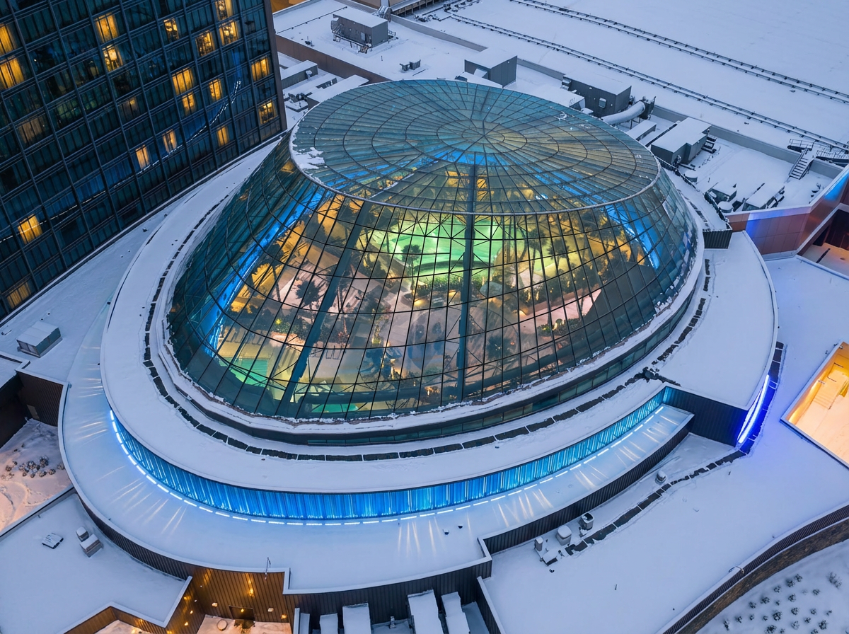 When winter grips Michigan in icy temperatures, guests at Gun Lake Casino Resort are now floating beneath a sunlit glass dome in a lush, 82-degree tropical paradise. Debuting in May 2025, the six-story, 32,000-square-foot Wawyé Oasis redefines what’s possible for year-round resort design—seamlessly shifting from daytime pool retreat to high-capacity concert venue, nightclub, and banquet space. Shaped by solar studies and engineered as a massive glass “sundial,” the Oasis is both sculptural and supremely functional, capturing natural daylight while shielding guests from the region’s harsh climate.
